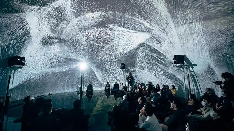 《自造自然—超越有機的共生》展览展示了AI演算法与沉浸式投影的深度结合。观众可通过AI演算法参与图像生成,触发虚拟生命的诞生。展览设置MR混合实境互动区,通过穿戴式装置体验虚拟与真实的融合。