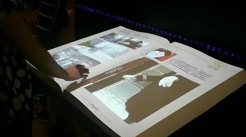 里面可以记载丰富的资料(包括动画、视频、图片)。参观者可以挥动手臂“翻阅”书籍,自左向右或者自右向左,还可以选择章节,快速找到您想翻阅的内容。